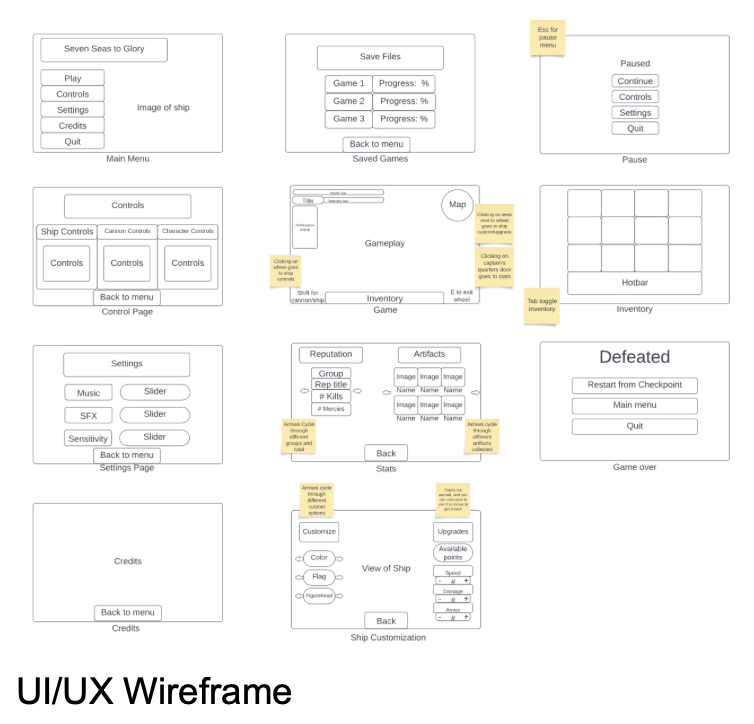 After working on the document, I wrote the code for switching between the character and the ship. The goal was to have the character walk up to the wheel, press E, and then the camera would change to the ship view along with the controls switching to the ship controller. Conversely, if the player is driving the ship and presses E, they go back to the character. I had to think a lot about how to store the camera’s location for each mode, and I came up with the idea to have empty game objects as placeholders for where the camera is meant to be. Not only does this help with accurately moving the camera, but if at any point we want to adjust the camera view, we can move the game object instead of changing numbers in the script.